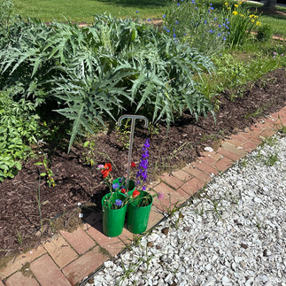 My art retreat at Arrowmont last fall, at which I spent a week making baskets, inspired us to try growing our own willows. We are attempting to grow living fences as well as pussy, fan and curly willows for flower arranging, and basket weaving willows in several colors. We ordered the cuttings from Dunbar Gardens and followed their instructions for planting. I think we have only lost one plant out of 150 planted! At this point most are about 18 inches tall. We look forward to attempting to weave some of them into fences and garden structures as well as baskets. I have registered for another weaving class this fall at Arrowmont and will be able to take some of my own willow cuttings to share.